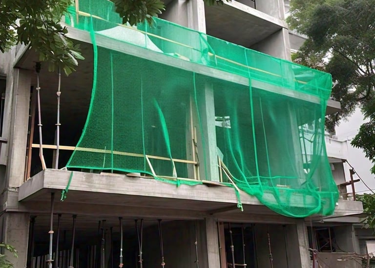 Engineered shade nets for robust construction site protection.